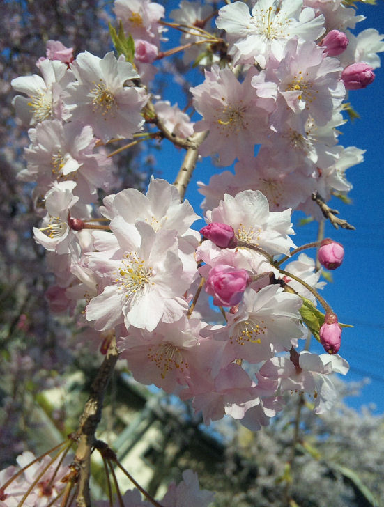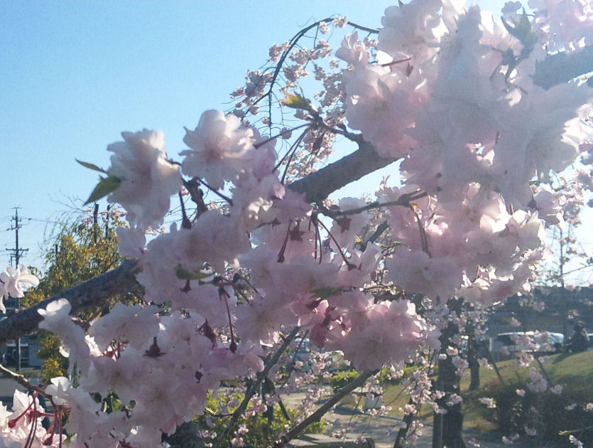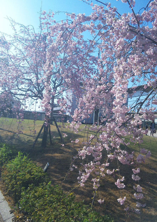 んでもって、帰りに図書館?の桜がしだれ桜でして、可愛かったのでパチリ。