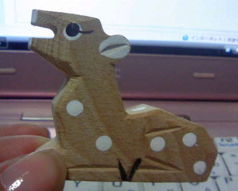ロクくんという鹿さんです。(ローマ字表示が正式なのかな?)多分、この名前と奈良で検索するとヒットすると思うので、興味のある人は検索してくださいな。しばらくハマりそうな予感。サイトを覗いてみたら、グッツの通販もやってるみたいので、したいです!!(するのか……)